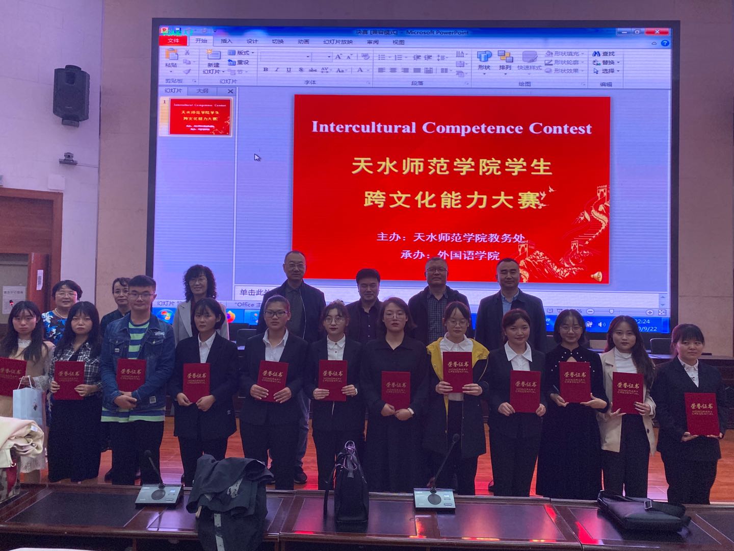 9月22号晚7:30,由教务处主办,pp电子官方网站承办的天水师范学院学生跨文化能力大赛在2号报告厅隆重举行,教务处处长郭昭第应邀出席本次大赛。大赛评委由pp电子官方网站院长姜炳生,副院长马金海、杨江锋,以及张亚兰、柳淑瑛、郭晓英、王海平老师担任。