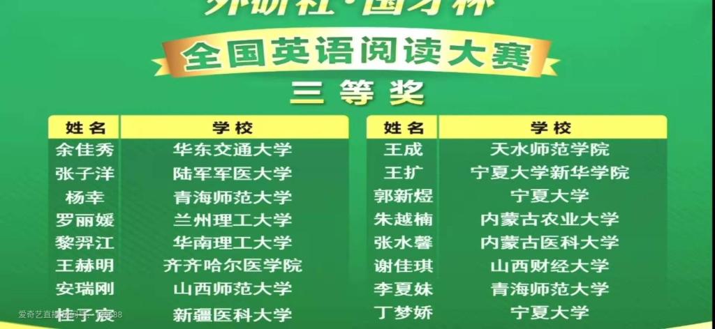 12月20日,2020“外研社·国才杯”全国英语写作、阅读大赛颁奖仪式在北京举行,pp电子pp电子官方网站英语专业17级一班的王成同学荣获全国阅读大赛总决赛三等奖。