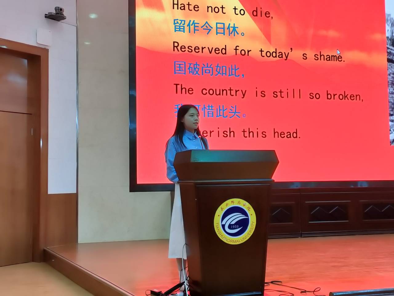 比赛中选手们从抗战以来共产党人的革命故事,以及新中国成立以来党员“冲锋在前 ”、“爱岗为国”的感人故事出发,用英语流利而又充满感情地讲述了一个个鲜活的革命故事,抒发了青年大学生的爱国主义情怀,歌颂了中国共产党的丰功伟绩。选手们精彩的演讲博得了同学们的阵阵掌声。