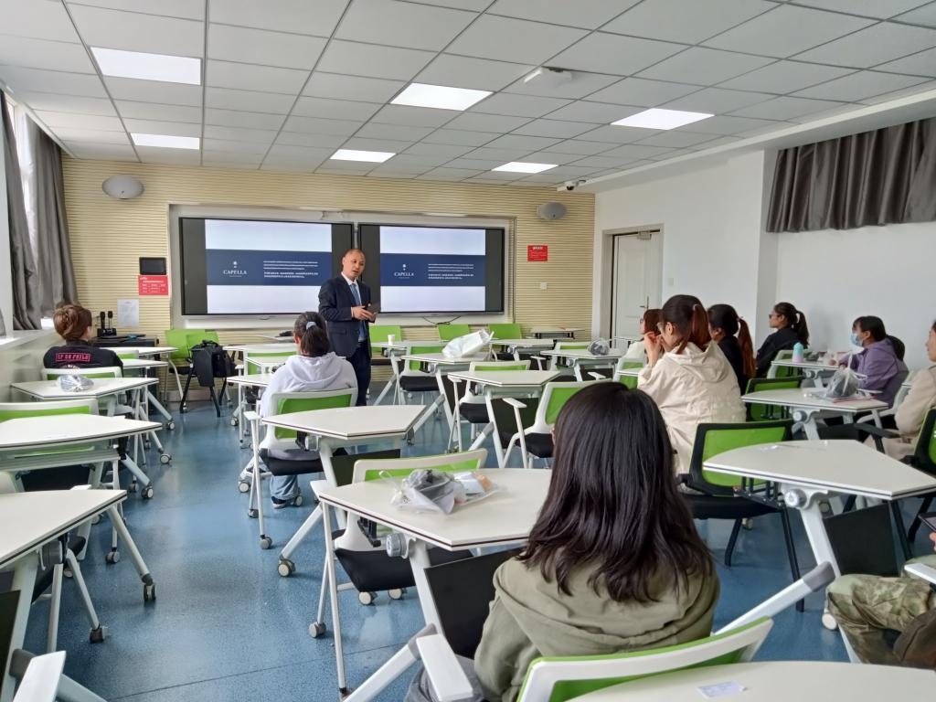 首先,负责人介绍了嘉佩乐酒店集团的发展状况:嘉佩乐酒店坐落在三亚有着神秘历史的土福湾,是三亚奢华时尚度假酒店的“登封之作”,酒店有着完整的服务体系、出色的服务以及完备的硬件设施,吸引着无数前来度假的游客。随后,负责人介绍了员工的薪资待遇、福利体系和晋升机制。最后,负责人给现场同学提供了一个简短的答疑交流环节,对同学们提出的关于酒店工作的各种疑问一一解答,并给出了一些工作建议。另外负责人还分享了自己的就业经验和工作体验,给尚未签订工作的同学提出求职建议。