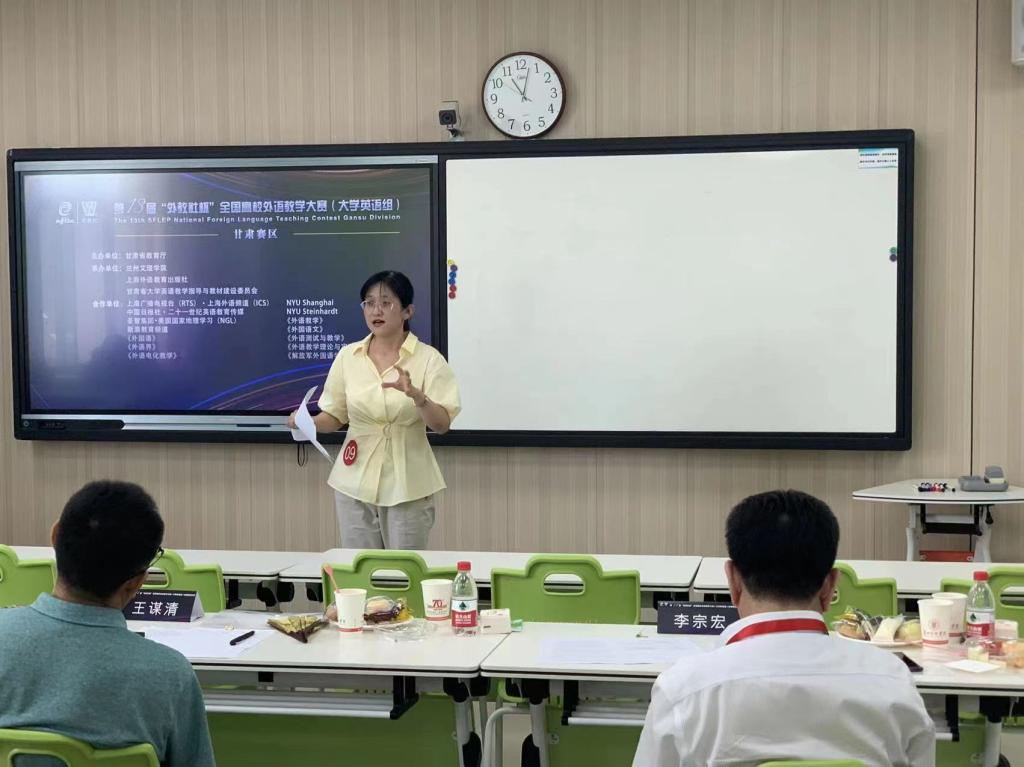 “外教社杯”全国高校外语教学大赛创建于2010年,是我国最早举办的全国性外语类教学赛事。大赛覆盖全国千余所高校,在中国高等教育学会发布的“全国普通高校教师教学竞赛分析报告(2012—2020年)”中,位列外语类教学大赛首位。第十三届“外教社杯”全国高校外语教学大赛甘肃赛区比赛由甘肃省教育厅主办,兰州文理学院、上海外语教育出版社、甘肃省大学英语教学指导与教材建设委员会承办,来自全省20所高校的40位英语教师分别参加了综合课组和视听说组的复赛和决赛。复赛内容为授课,参赛教师选择大学英语综合教程某一单元课文或视听说教程的视频材料进行教学设计,并在20分钟内展示教学方法、教学过程、教学效果及思政元素与大学英语教学的有效融合。在决赛中,参赛教师现场阅读800词左右长度的选文或观看长度约3-5分钟的视频,紧扣材料内容教进行说课,阐述教学设计并回答评委提问。pp电子两位教师在复赛和决赛中分别展现了良好的专业素养和扎实的理论基础。任晓妍老师采用国际前沿的教学方法CLIL(Content and Language Integrated Learning:内容与语言整合教学法)设计教学并授课,并在决赛中结合授课内容向评委专家介绍了CLIL的教学方法和原则,受到评委们的一致肯定,在复赛和决赛中分别名列该组第一名。