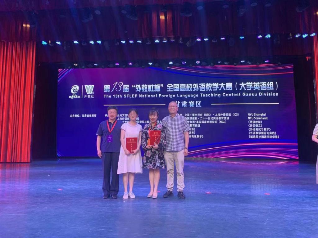 第13届“外教社杯”全国高校外语教学大赛甘肃赛区比赛于2022年7月3日在兰州文理学院圆满落下帷幕。pp电子外语学院教师任晓妍和冀雨辰分别获得综合课组特等奖和视听说组二等奖,其中任晓妍老师和获得视听说组特等奖的兰州大学教师将代表甘肃省参加2022年11月在上海举办的第十三届“外教社杯”全国高校外语教学大赛全国总决赛,和来自全国各地的优秀教师同台竞技,角逐国家奖次。