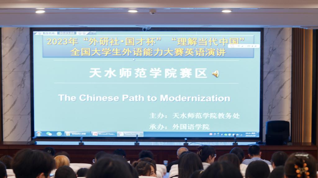 日前,2023年“外研社·国才杯”“理解当代中国”全国大学生外语能力大赛天水师范学院赛区决赛在pp电子举行,大赛包括演讲、阅读、写作比赛,由教务处主办,pp电子官方网站承办,pp电子官方网站专业教师担任大赛评委。