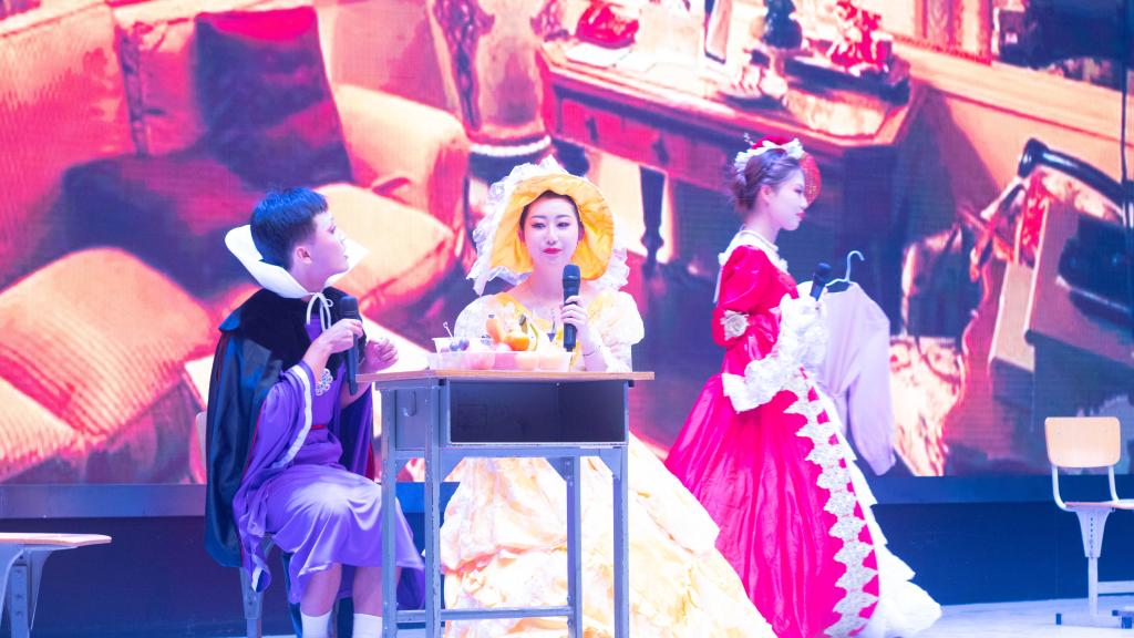 本次晚会最大的亮点和特色是英文话剧展演,参赛作品是由21级、22级各班以及许胜男老师团队共9个团队带来的话剧作品。《三只小猪》给了原先的故事一个不一样的结局,流利的英语和妙趣横生的表演相得益彰,让场下的观众朋友们狠狠回忆了一把童年。《贝医生历险记》凭借其抑扬有度的语音语调给观众和评委们留下了深刻的印象。《灰姑娘》、《芭比之魅力公主学院》、《Cinderella》、《百万英镑》等改编自英文原版剧本,而同学们独特的表演方式带给现场观众不一样的感觉。同学们给故事中的人物赋予了不一样的精神内核,让故事更加立体生动,“原版”和“新版”的交替冲击让大家充分感受到大学生无穷的创造力。古典故事《木兰从军》带大家重温中华经典的魅力,更体现出pp电子官方网站学生“学外国语言,讲中国故事”的精神目标,而剧中坚毅果敢的木兰也正是当代所有大学生的精神偶像。话剧《动物城》给大家展示了一个不一样的动物王国,一个为了气候问题而焦急忧虑的动物城,一个充满人文关爱情怀的动物城,展现了pp电子官方网站学生更加宽广的国际视野。其中最受关注的还属改编自同名影视剧的《甄嬛传》,为艺术献身的主演们妙趣横生的表演逗得场下哈哈大笑,晚会的气氛也达到了高潮。