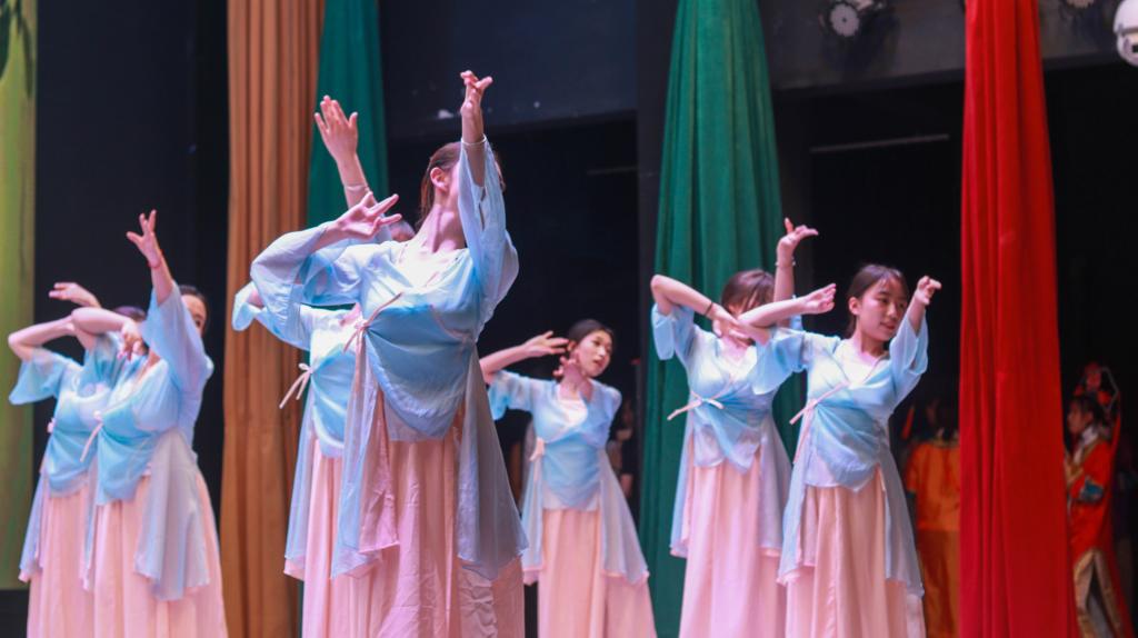 晚会以歌曲《善变》开场,演唱的两位女同学由台下缓缓走上台,极具设计感的出场方式瞬间吸引了在场观众的目光,瞬间掌声雷动。紧接着由21级英语2班同学带来的现代舞《可爱摆》舞动全场,激情四射。古典舞《声声慢》则将全场观众的思绪引入胜地,悠扬的歌声伴着袅娜的舞姿,让全场观众心悦神怡。英文歌曲《You belong with me》、《New boy》和《Pray for you》、Rap《Shape of you》充分展现了pp电子官方网站的专业特色以及学生的专业能力,更突显了当代大学生朝气明媚的青春风貌。本科生组合的歌曲串烧充分展现了她们丰富的精神世界,让观众们深切地感知到青春的力量,而随后研究生团队带来的歌曲串烧又将观众们带入毕业的深沉思绪中:愿我们出走半生,归来仍是少年。