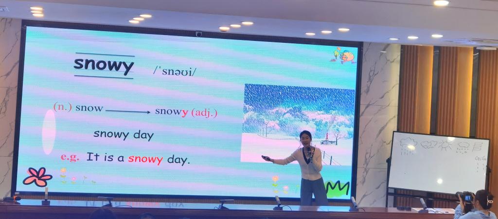 大赛分为即兴演讲、课堂教学展示、课后教学反思三个环节。余文静同学在授课环节将歌曲、古诗词和传统节日巧妙地融合到单词和课文讲解当中,课堂气氛活跃。王蓉同学在模拟上课环节采用歌曲导入复习单词,运用简笔画对新单词进行了详细讲解和扩展,口语流利,自信大方。马君茹同学以一首英文歌曲的演唱开始了自己的授课环节,亲和力强,游戏环节生动有趣。三位选手精神饱满、教态自然、声音洪亮、对教学内容熟练,展示了pp电子师范生的教学风采,受到一致好评。