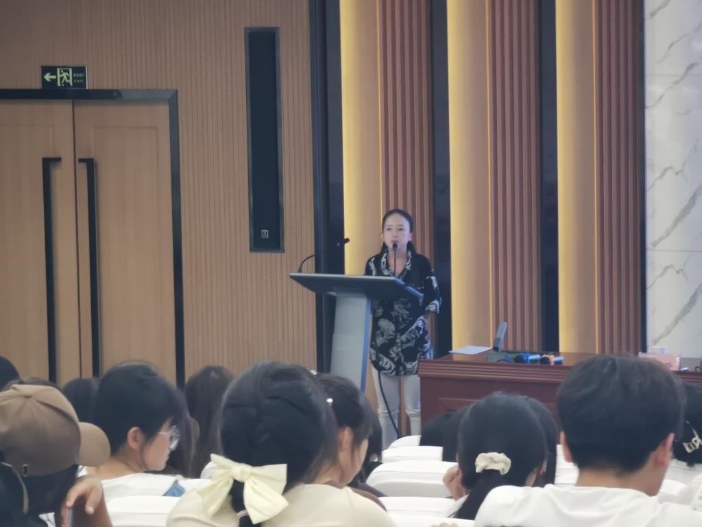 党总支副书记袁荣从大学生管理的角度进行发言,总结了21条大学生活的金玉良言,希望新同学们强身健体,时刻注意人身及财产安全,防范电信诈骗,关注自身能力发展,提前做好职业生涯规划,在未来的人生中一帆风顺。