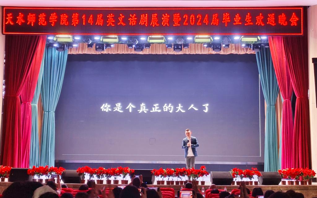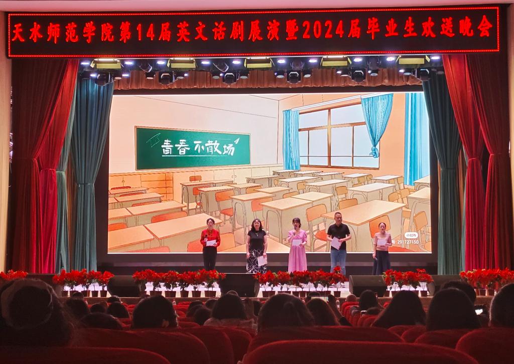 6月6日下午16时,pp电子官方网站在学校大礼堂成功举办“第十四届英文话剧展演暨2024届毕业晚会”,学院领导班子、2024届毕业班班主任、部分任课教师莅临晚会,pp电子官方网站全体本科生和研究生现场观看。