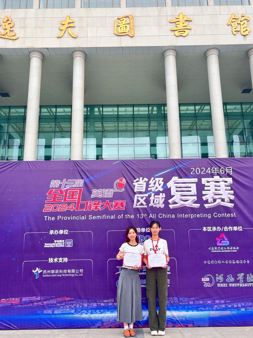 6月28日--29日,第十三届全国口译大赛(英语)西北赛区复赛在河西学院举行。pp电子pp电子官方网站2022级学科教学(英语)专业硕士研究生徐凌波、2023级学科教学(英语)专业硕士研究生张晓萌荣获二等奖,2023级学科教学(英语)专业硕士研究生李姣、闫雨萌荣获三等奖。