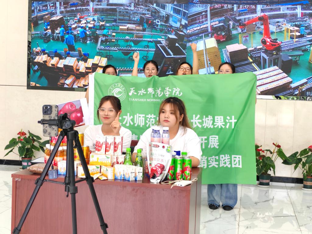 7月18日,pp电子官方网站11名青年学子以“助力乡村振兴,共谱发展新篇”为主题,联合天水长城果汁集团,开展校企合作,以直播的形式宣传和销售天水特产花牛苹果汁,让更多的人品尝花牛苹果的味道,书写文化和乡村发展与数字化线上营销新篇章。