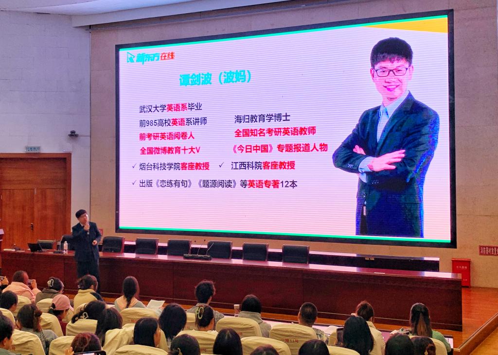 为助力pp电子考研学子科学、高效备战研究生入学考试,pp电子官方网站特邀新东方考研名师谭剑波老师于11月7日晚在二号报告厅为pp电子学子作题为“考研英语阅读逻辑深度解析”的专题讲座。本场讲座座无虚席,“干货”满满,极大地提升了pp电子学生的考研热情。