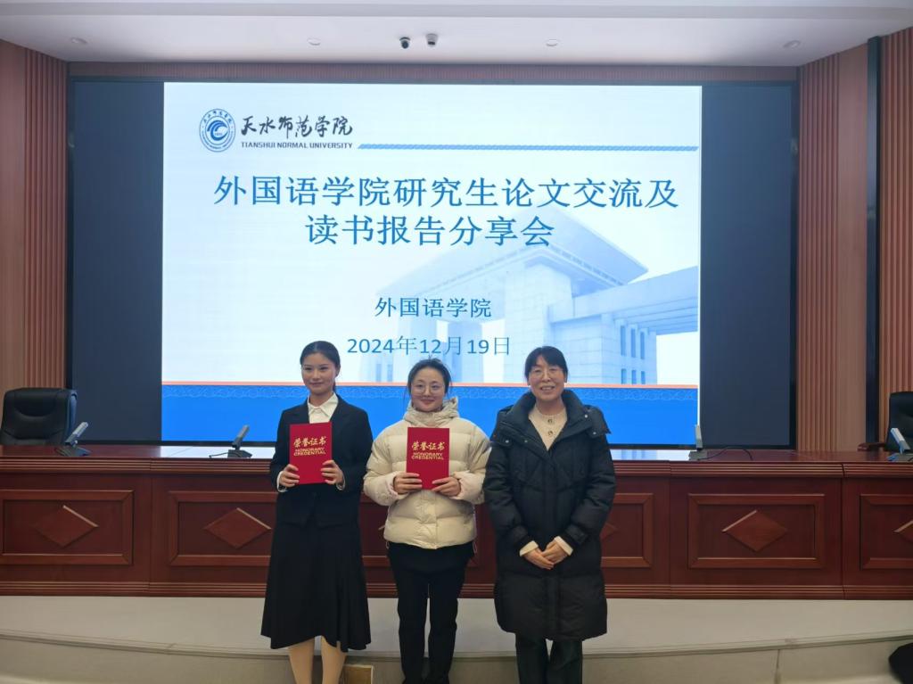 在读书报告分享环节,9位研究生挑选了涵盖英语学科发展前沿、英语教学法革新、语言学深度探索以及人工智能时代外语教育变革等领域的经典书籍进行分享。他们不仅详细阐述了书籍的核心内容与作者观点,更结合个人学术背景与实践经验,分享了独到的见解与深刻的感悟,展现了他们在阅读中的思考与收获。