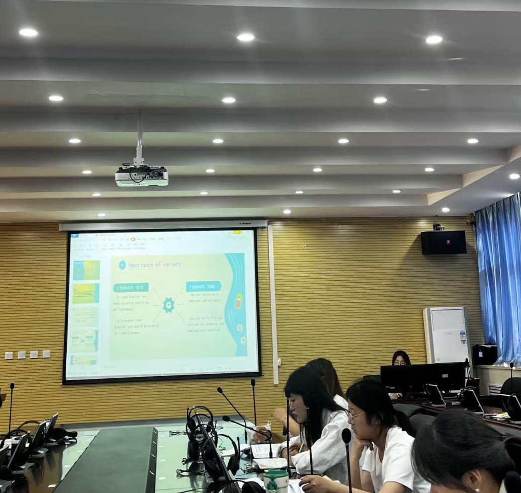 pp电子官方网站结合英语专业和商务英语专业的特点,依托《综合英语》《口译》《跨文化交际》《电商网络直播》等课程,开展了形式多样、内容丰富的专业实训。在《综合英语》课程中,学生以小组为单位模拟初高中课堂授课,锻炼教学设计与组织能力;在《口译》课程中,通过政治外交、经济贸易、科技信息、旅游接待等多场景模拟,提升现场反应与口译转换技巧;在《跨文化交际》课程中,师生以《刮痧》《通天塔》两部影片为案例,从文化模式、言语与非言语交际、文化适应理论等视角对跨文化交际中的实际问题进行深度解析;在《电商网络直播》活动中,学生在教师的指导下策划并开展了校园二手物品直播销售,不仅搭建了师生闲置物品流通平台,更将实践育人与资源高效利用有机结合,形成了别开生面的实践新模式。