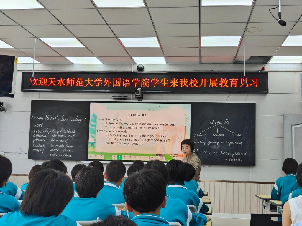 6月25日,2022级英语专业的43名师范生赴天水市逸夫实验中学分校(伏羲中学)开展教育见习活动。在听课观摩环节,同学们先后体验了多位教师的不同教学风格,亲历中学英语课堂的完整流程,切实感受课堂组织与管理的细节。随后,师范生们加入英语备课组教研活动,由伏羲中学英语教研组组长张莉老师与多位一线教师共同主持,省特级教师计卫珍老师围绕英语学科核心素养对教学目标设定、课堂互动方式和学习评价机制等方面进行了细致点评与指导,为同学们今后开展教学实践提供了宝贵借鉴。