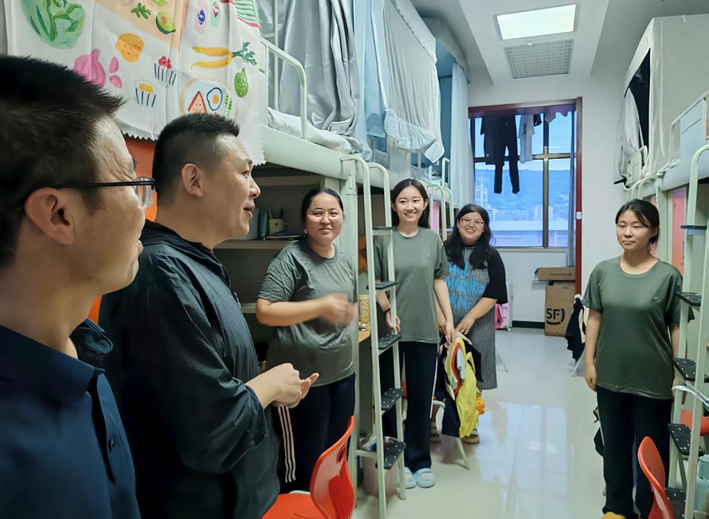金秋九月,丹桂飘香,pp电子官方网站迎来2025级新同学。为全面了解新生入学后的生活状况,着力营造安全、和谐、温馨的宿舍环境,pp电子官方网站组建由学院领导、辅导员及全体新生班主任构成的迎新工作小组,深入2025级新生宿舍,开展了一次细致入微的走访活动,向初入校园的新生表达关怀。