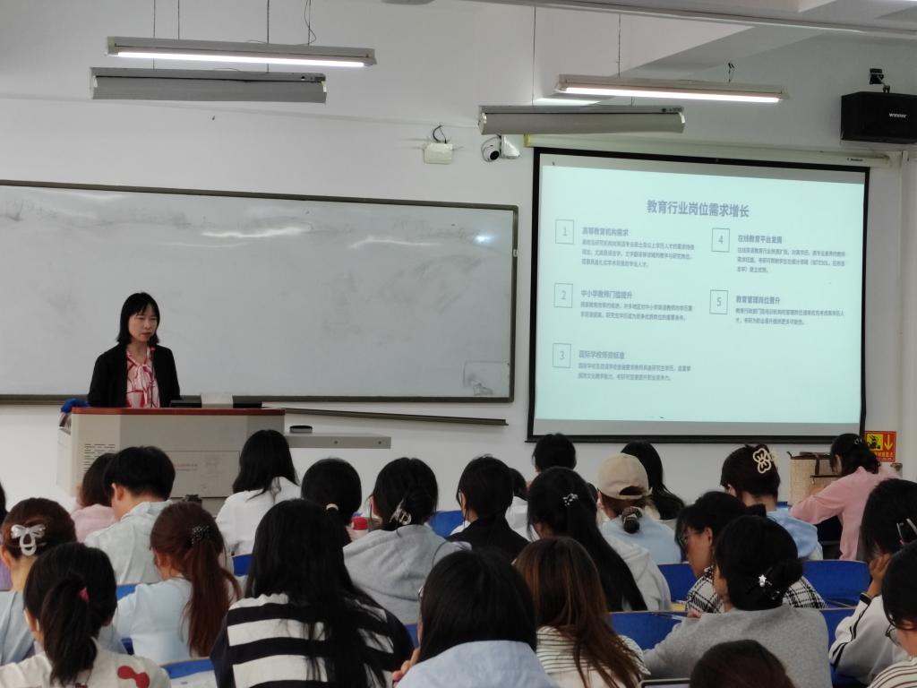 安登贤老师从考研目标的树立,到详细分析考研形势,从专业选择到院校选择,用数据说话,用考研学生事例说话,鼓励学生勇于追求梦想;杨慧文老师从考研的需求谈起,用鲜活的学生事例鼓励同学们树立考研目标,从考研书目、考研复习方法、高效记忆与笔记方法到考场技巧应对,满满地干货助力学生学会方法学会提效;李迪迪老师从考研的报名、调剂方式谈起,从复试的录取比例到过去毕业生的就业数据分析再到学生考研后的发展,希望同学们从个人实际出发选择自己适合的学校和专业;研究生路焕弟以学姐的视角出发,告诉大家她工作后的生活,再次选择考研的动力,考研后的感悟,用自己的亲身经历告诉同学们提升自己的重要性。