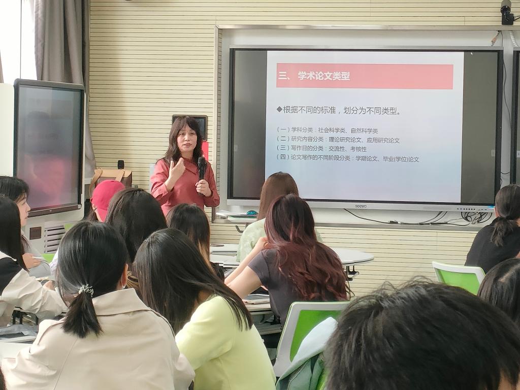 为了进一步提升pp电子师生的论文撰写能力,拓宽选题思路,提高学术素养和学术论文写作的专业性,根据pp电子官方网站2023年学术活动月活动安排,5月12日下午,学院邀请郭晓英教授在2号教学楼704智慧教室开展了题为“学术论文写作”的专题讲座。pp电子部分教师、全体研究生和部分本科生现场聆听。