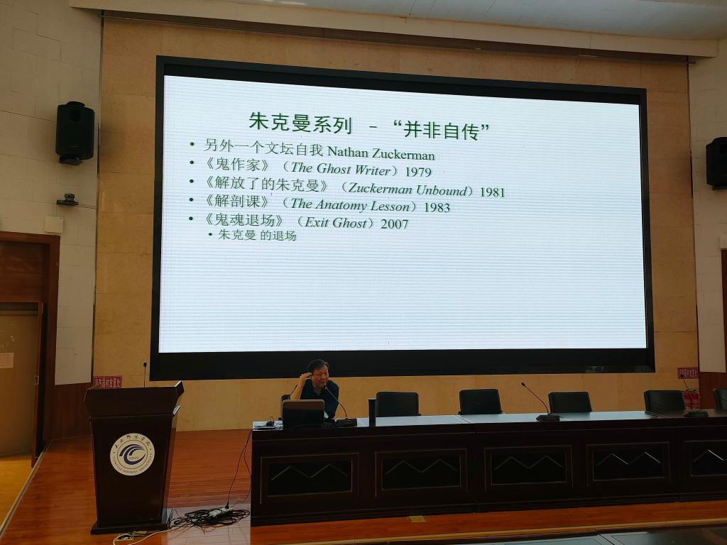 6月9日下午,西安外国语大学博士生导师张生庭教授应邀为pp电子官方网站师生作了题为“文学世界与游戏诗学——菲利普·罗斯的小说美学漫谈”的学术讲座。pp电子官方网站教师、研究生和本科生共180余人聆听了报告。