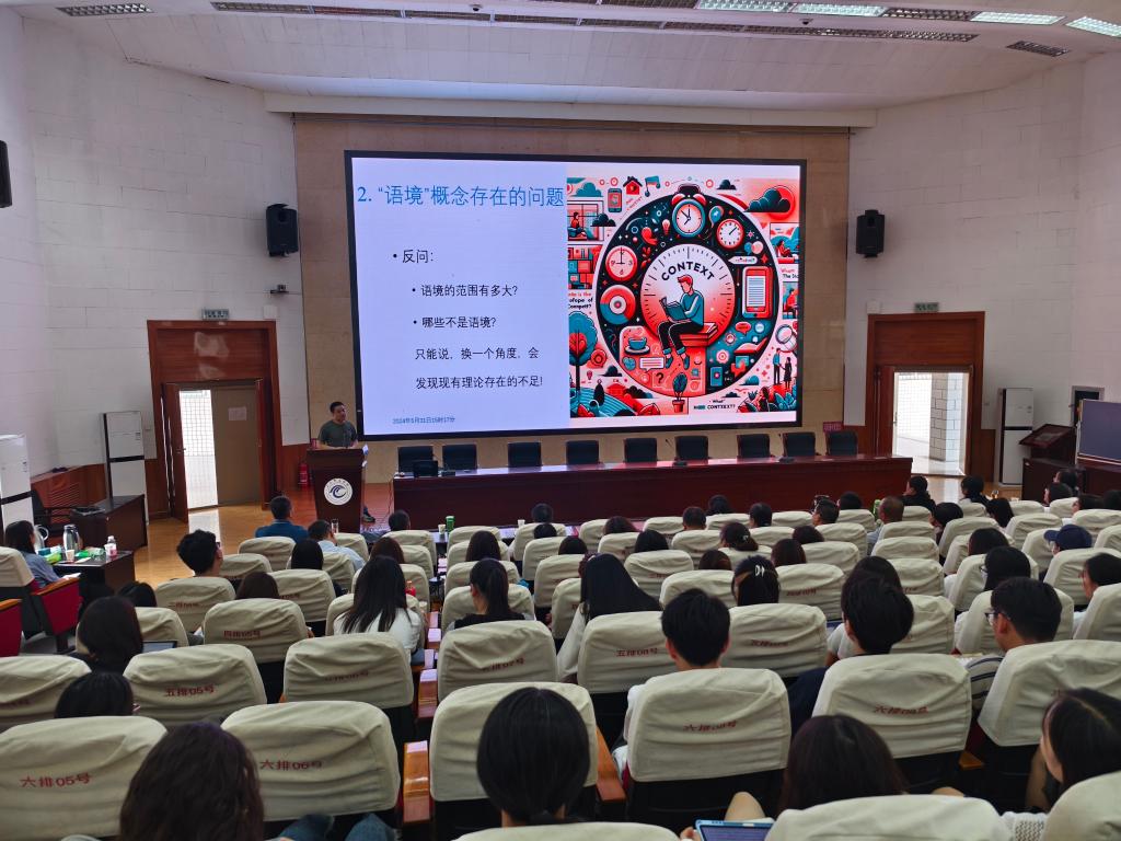 报告结束后,侯建波教授还与在座的师生们进行了亲切地互动交流,并细致耐心地解答了在场师生提出的问题。在场的师生纷纷表示受益匪浅。侯教授的研究视角和问题意识为他们提供了崭新的话语分析的知识视域,这对他们今后从事语言研究和语言教学都多有助益。