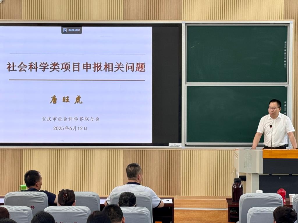 6月12日下午,应pp电子官方网站邀请,重庆市社科联副主席、博士唐旺虎应邀在2号教学楼121教室作题为《社会科学类项目申报相关问题》学术报告。报告由pp电子官方网站院长杨江锋主持,师生代表200余人参加。